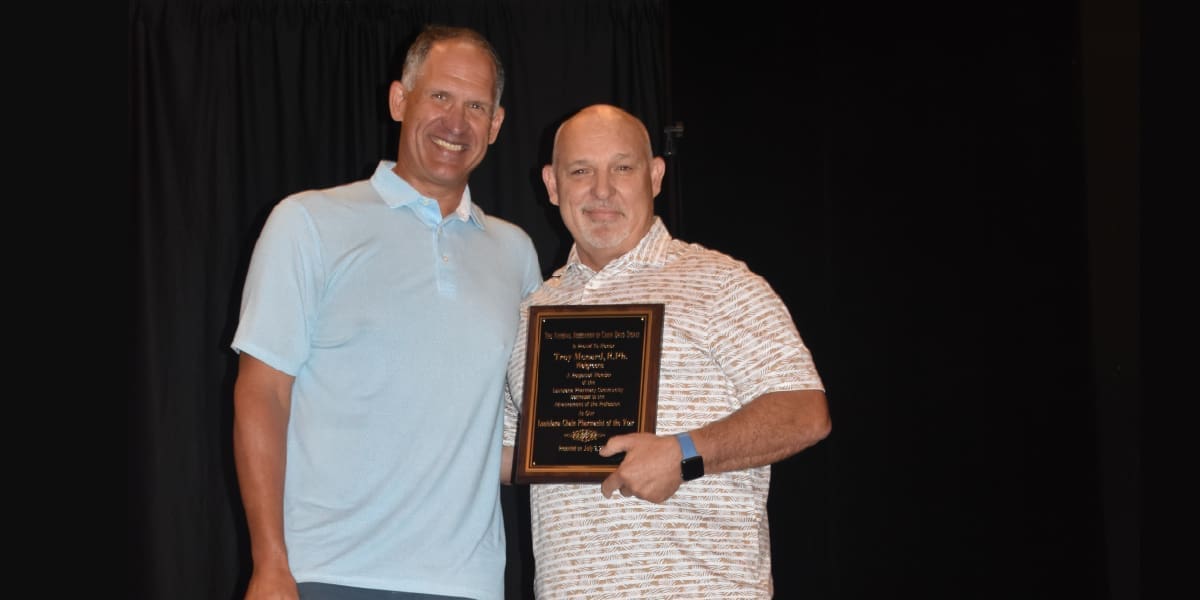 Walgreens pharmacist Troy Menard, a member of the Louisiana Board of Pharmacy, was chosen by his peers and honored by NACDS at the Louisiana Pharmacist Association Annual Convention's award ceremony as the "2022 Chain Pharmacist of the Year."